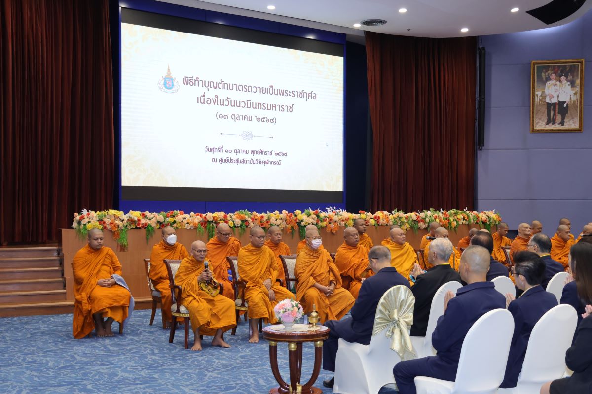 เนื่องในโอกาส “วันนวมินทรมหาราช” วันที่ 13 ตุลาคม ถือเป็นวันคล้ายวันสวรรคต พระบาทสมเด็จพระบรมชนกาธิเบศร มหาภูมิพลอดุลยเดชมหาราช บรมนาถบพิตร สถาบันวิจัยจุฬาภรณ์ ได้จัดพิธีทำบุญตักบาตรขึ้นในวันที่ 10 ตุลาคม 2568 ณ ศูนย์ประชุมสถาบันวิจัยจุฬาภรณ์ โดยมี รองศาสตราจารย์ ดร.ชูศักดิ์ ลิ่มสกุล รองประธานสถาบันวิจัยจุฬาภรณ์ ฝ่ายบริหารและอาคารสถานที่ พร้อมด้วยคณะผู้บริหาร และบุคลากรของสถาบันวิจัยจุฬาภรณ์ ได้ร่วมกันทำบุญตักบาตรพระสงฆ์จากวัดเทวสุนทร จำนวน 29 รูป เพื่อถวายเป็นพระราชกุศลและน้อมรำลึกถึง พระราชจริยวัตรอันงดงาม และพระราชกรณียกิจอันยิ่งใหญ่ของพระมหากษัตริย์ รัชกาลที่ 9 แห่งพระบรมราชจักรีวงศ์ ที่ได้ทรงบำเพ็ญเพื่อพสกนิกรตลอดพระชนม์ชีพ