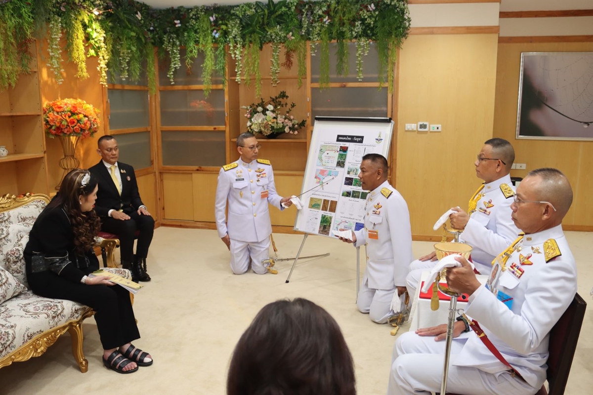 จากนั้น พลเอก ชิดชนก นุชฉายา เสนาธิการทหาร พลเอก ศราวุธ จันทร์พุ่ม ผู้บัญชาการหน่วยบัญชาการทหารพัฒนา พลโท ชาคร บุญภักดี เจ้ากรมแผนที่ทหาร และพลโท จุมภฏ นุรักษ์เขต เจ้ากรมกิจการชายแดนทหาร กราบทูลรายงานแผนการดำเนินงาน เรื่อง แผนที่การสำรวจ และจัดทำหลักเขตแดนไทย-กัมพูชา ทั้งนี้ เขตแดนไทย-กัมพูชา มีความยาวรวม 798 กิโลเมตร นอกจากนี้ ยังได้ปักหลักเขตแดนไว้อีก 74 หลัก โดยเริ่มจากหลักเขตแดนที่ 1 ที่ อำเภอภูสิงห์ จังหวัดศรีสะเกษ และปักหลักต่อ ๆ ไปทางทิศตะวันตกไปทาง จังหวัดสุรินทร์ จังหวัดบุรีรัมย์ จังหวัดสระแก้ว จังหวัดจันทบุรี และสิ้นสุดที่หลักเขตแดนที่ 73 อำเภอคลองใหญ่ จังหวัดตราด โดยหลักเขตแดนแต่ละหลักจะปักไปตามลักษณะภูมิประเทศตามธรรมชาติ