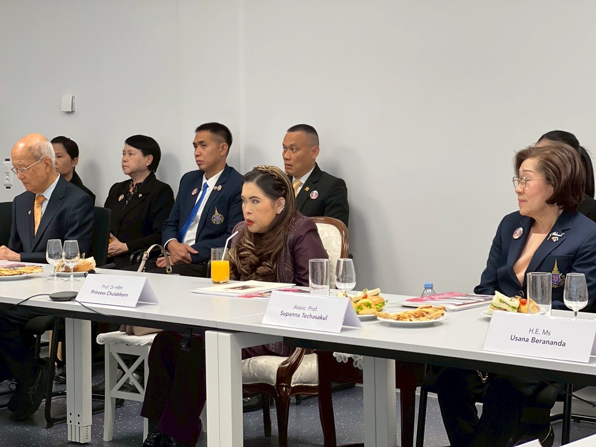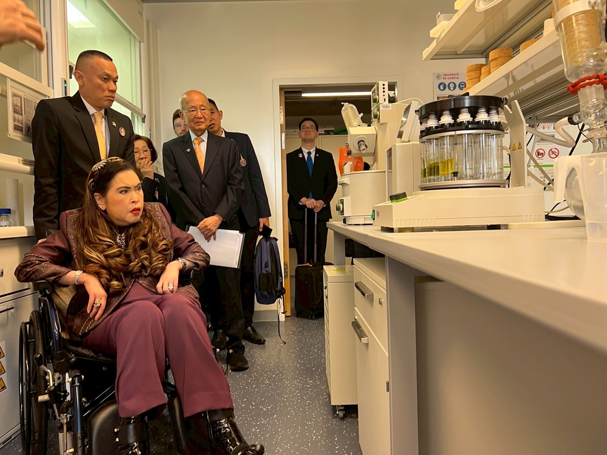 สำหรับการเสด็จไปเยือนสมาพันธรัฐสวิสในระหว่างเดือนพฤษภาคม พ.ศ. 2568 ที่ผ่านมา ได้ทรงปฏิบัติพระกรณียกิจทางวิชาการด้านงานวิจัยเคมีและผลิตภัณฑ์ธรรมชาติกับคณะเภสัชศาสตร์ มหาวิทยาลัยเจนีวา ที่มีความเป็นเลิศทางด้านการวิจัยสาขาวิทยาศาสตร์ธรรมชาติ และความเชี่ยวชาญด้านการศึกษาค้นคว้าสารผลิตภัณฑ์ธรรมชาติและสารออกฤทธิ์ทางชีวภาพ ซึ่งศาสตราจารย์ ฟรองซัวส์ เบลองเฌร์ (Professor François Bellanger) ผู้แทนอธิการบดีมหาวิทยาลัยเจนีวา พร้อมด้วยผู้บริหารและคณาจารย์ของมหาวิทยาลัยฯ เฝ้ารับเสด็จ และได้ถวายการบรรยายถึงแนวทางการดำเนินงานวิจัยของคณะฯ โดยองค์ประธานสถาบันวิจัยจุฬาภรณ์ได้ทรงหารือและแลกเปลี่ยนองค์ความรู้ที่นำไปสู่ความสำเร็จในการวิจัยทางเคมี เภสัชวิทยา และผลิตภัณฑ์ธรรมชาติ ซึ่งมีแนวทางการวิจัยที่อาศัยเทคโนโลยีสมัยใหม่และความก้าวหน้าของการพัฒนางานวิจัยเคมี ในการแยกและสกัดสารสำคัญในพืชและสิ่งมีชีวิตอื่น ๆ จากธรรมชาติ รวมถึงฤทธิ์ทางยาของสารผลิตภัณฑ์ธรรมชาติที่มีฤทธิ์ทางชีวภาพ อาทิ สารต้านอนุมูลอิสระ สารต้านแบคทีเรีย และสารยับยั้งเซลล์มะเร็ง โดยมุ่งหวังเพื่อใช้เป็นยาทางการแพทย์ต่อไปในอนาคต