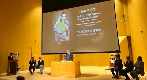 สำหรับการเสด็จไปทรงรับการทูลเกล้า ฯ ถวายรางวัลเหรียญเกียรติยศทีแอค (TEAC Medal of Honor) ในครั้งนี้ ได้พระราชทานพระวโรกาสให้ ศาสตราจารย์ ดร. อาซากาวะ โยชิโนริ ประธานสมาพันธ์ทีแอค และคณะ