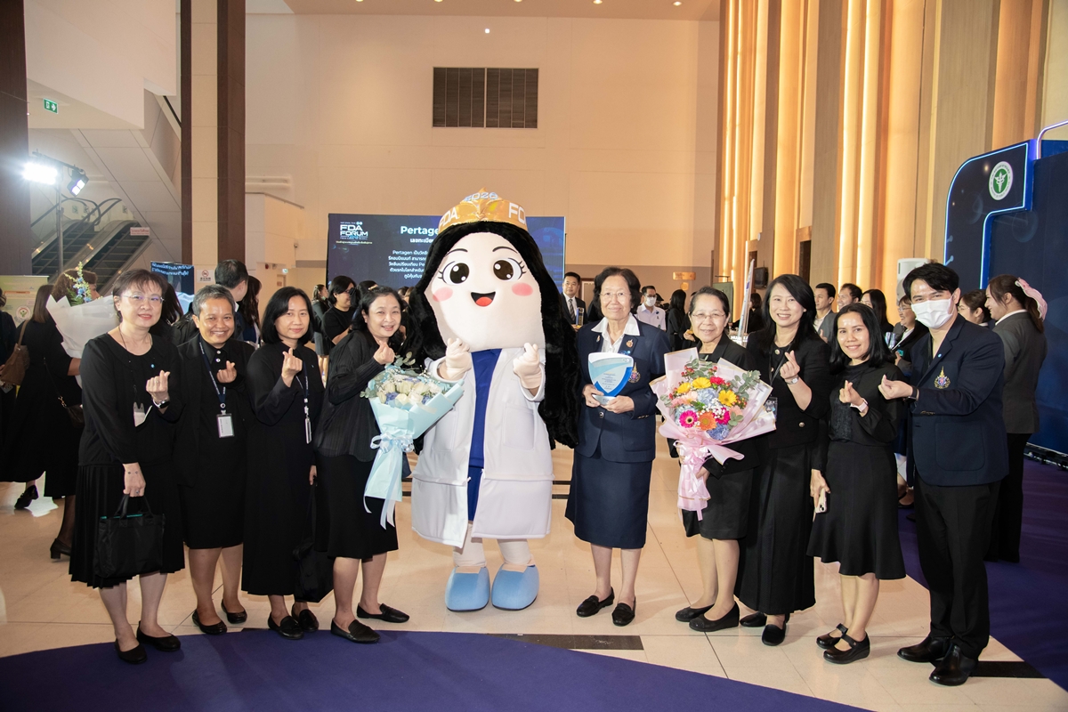 โอกาสนี้ รศ. ดร.จุฑามาศ สัตยวิวัฒน์ รองประธานสถาบันวิจัยจุฬาภรณ์ ฝ่ายธุรการวิทยาศาสตร์ เป็นผู้แทนสถาบันฯ เข้าร่วมรับมอบ “โล่รางวัลเครือข่ายวิจัยเพื่อการคุ้มครองผู้บริโภค” จาก ภญ.สุภัทรา บุญเสริม เลขาธิการคณะกรรมการอาหารและยา (อย.) โดยมีวัตถุประสงค์เพื่อเป็นการยกย่องหน่วยงานเครือข่ายวิจัยที่มีความร่วมมือกับ สำนักงานคณะกรรมการอาหารและยา (อย.) อันก่อให้เกิดผลงานวิจัยเชิงประจักษ์ที่เป็นประโยชน์ในการคุ้มครองผู้บริโภคด้านผลิตภัณฑ์สุขภาพอย่างเป็นรูปธรรม