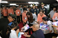 รวมทั้งพระราชทานชุดสื่อการเรียนรู้สำหรับเยาวชน ประกอบด้วยสมุดนิทานวาดภาพระบายสี “ นิทานใต้ใบบัว” ในโครงการนิทานตามคำพ่อ ซึ่งได้น้อมนำพระบรมราโชวาทและพระดำรัสของพระบาทสมเด็จพระปรมินทรมหาภูมิพลอดุลยเดช บรมนาถบพิตร ที่ได้พระราชทานให้แก่เด็ก ๆ และประชาชนชาวไทยในโอกาสต่าง ๆ มาเป็นแนวคิดในการสร้างสรรค์เรื่องราว พร้อมกันนี้ ยังได้พระราชทานดินสอสี กล่องดินสอ กระปุกออมสินและของเล่นเด็ก ให้แก่เด็ก ๆ ที่มาเฝ้ารอรับเสด็จอย่างทั่วถึงด้วย