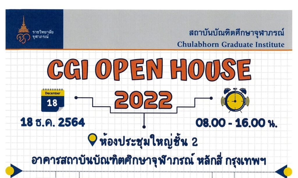 สถาบันบัณฑิตศึกษาจุฬาภรณ์ จัดงาน “แนะนำหลักสูตร CGI Open House 2022 และคัดเลือกผู้รับทุนการศึกษา” สถาบันบัณฑิตศึกษาจุฬาภรณ์ กำหนดจัด “งานแนะนำหลักสูตร CGI OPEN HOUSE 2022” และสอบคัดเลือกผู้รับทุนการศึกษา ทั้ง...