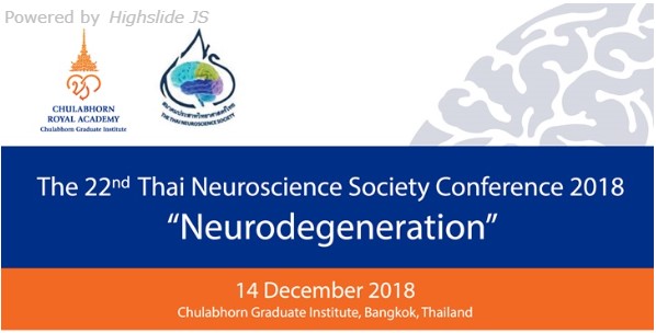 สถาบันบัณฑิตศึกษาจุฬาภรณ์ ราชวิทยาลัยจุฬาภรณ์ ร่วมกับสมาคมประสาทวิทยาศาสตร์ไทย จัดประชุมวิชาการประสาทวิทยาศาสตร์ ครั้งที่ 22 ประจำปี 2561 เรื่อง “Neurodegeneration” (22nd Thai Neuroscience Society Conference 2018) ในวันศ...