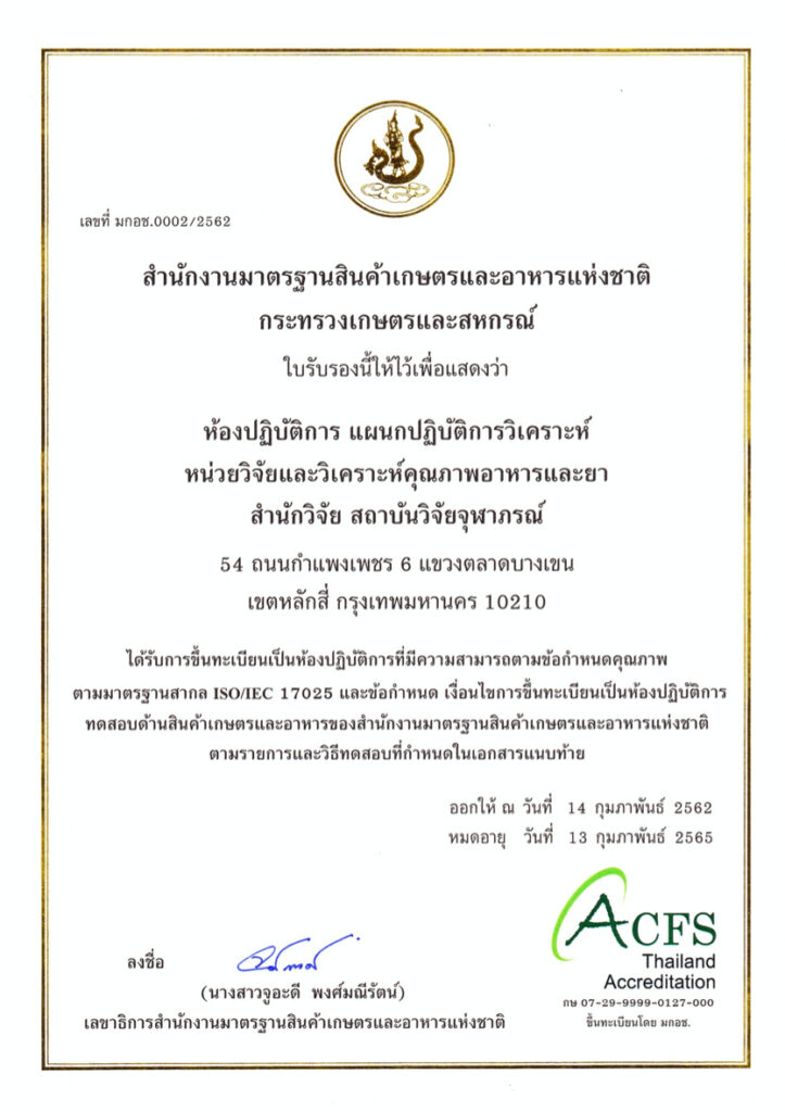 ปัจจุบัน แผนกปฏิบัติการวิเคราะห์ อยู่ระหว่างดำเนินการขยายขอบข่ายในการตรวจวิเคราะห์สารออกฤทธิ์ที่สำคัญในผลิตภัณฑ์สมุนไพร (Andrographis paniculata หรือ ฟ้าทะลายโจร) เพื่อเป็นการสนับสนุน/ติดตามคุณภาพของผลิตภัณฑ์ฟ้าทะลายโจรในท้องตลาด สำหรับใช้ในการรักษาโรค COVID-19 และเมื่อไม่นานมานี้ แผนกปฏิบัติการวิเคราะห์ ยังได้รับรางวัล “ห้องปฏิบัติการทดสอบผลิตภัณฑ์เกษตรและอาหารดีเด่น ประจำปี 2565” จากสำนักงานมาตรฐานสินค้าเกษตรและอาหารแห่งชาติ (มกอช.) เมื่อวันที่ 7 ตุลาคม 2565